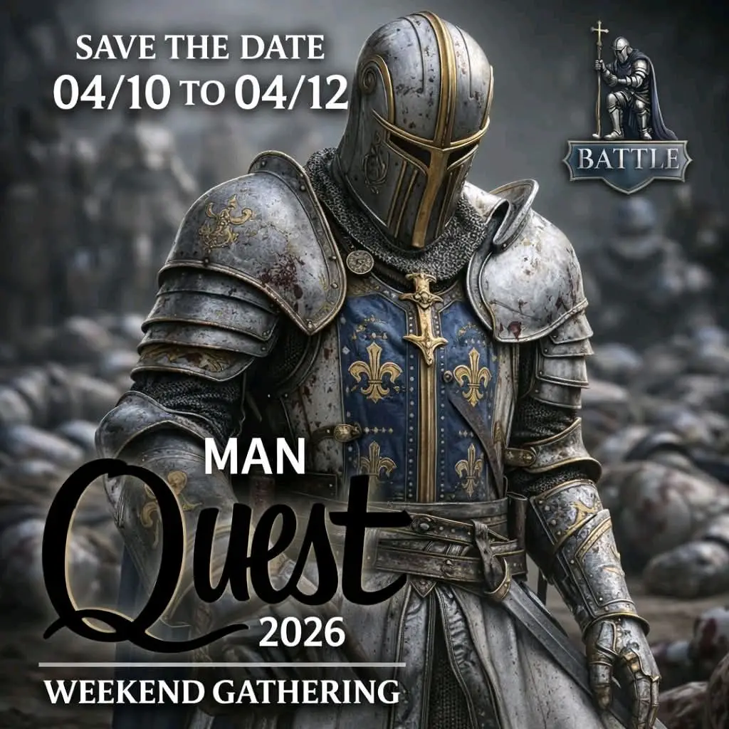 Man Quest: Battle is a men’s retreat built for guys who know there’s more in them—and more being demanded of them. More courage. More clarity. More fire. We’re stepping away from the noise, the grind, and the half-hearted faith to fight for what matters most: our hearts, our homes, and our calling.